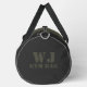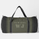 Sleek and customizable gym duffel bag design with minimalist text reading "Gym Bag" and personalized name option. The bag features a stylish combination of military green and dark gray, making it the perfect gift for a friend who appreciates personalized items.