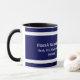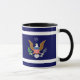 Coffee mug. Classic military design for active or retired Navy personnel. The Navy colours form the background for a close similarity of the Great Seal of the United States (Defence emblem). Personalize it with a name, plus rank and "Navy" text. If retired, this text has also been included. All text, however, is easily edited or removed by using the template. For other changes (different type font, colour, size or placement) select "personalize" the select "Edit using Design Tool." Several other styles of mugs are provided in the "options" section, so be sure to check them out. Makes a great gift.