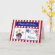 This Patriotic Birthday Card will make your military Niece smile. This colourful card features a red and white striped background, chocolate cupcake with stars, American Flags, a flag heart and a candle, red, white & blue stars, a dog tag embossed with "USA" and a blue banner with the text "Happy Birthday" in white. ©2015 Dog Tags & Combat Boots Military Cards by Sherry Harris