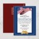 Celebrate a momentous occasion with our Military Retirement American Flag Gold Eagle invitation, a tribute that eloquently captures pride and honour. This invitation is a masterpiece, blending the majestic symbol of the American flag with the regal presence of a gold eagle, exuding a sense of patriotism and distinguished service. The intricate details of the eagle glint with a golden hue, symbolizing the radiant glow of a much-deserved retirement. Each invitation is meticulously crafted, ensuring a dignified presentation that echoes the steadfast dedication of a military career. Envelop your guests in a sentiment of gratitude and respect, as this beautiful piece becomes more than just an invitation—it’s a keepsake of cherished memories. Let this exquisite design be the gateway to a celebration of service, courage, and the next chapter in a veteran’s journey.
