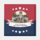 Honour your serviceman with this patriotic red white and blue 2" x 2" square magnet featuring a single centred circle photograph, a stars and stripes banner with a faux foil border and placeholders for your special service person's name and rank. Great gifts for parents and grandparents to put on their refrigerator! Available in other types and sizes.