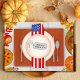 This heartfelt Thanksgiving greeting card features a place setting with an American flag napkin and dog tags engraved with ‘Always With Us’ resting in the centre of the plate. Traditional holiday favourites, roast turkey, pumpkin pie, apples, and cranberries — surround the setting, accented with autumn leaves. A touching tribute to honour service members, this card is perfect to send to military families, deployed loved ones, veterans, or anyone you wish to thank for their service during the holiday season.