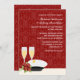 Customizable wedding invitation featuring two champagne glasses, a bridal bouquet and a dress blues cover.