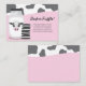 If your baby shower theme is Milk and Cookies then this diaper raffle card is perfect! This design features a bottle of milk and a cute cow on the front with a stack of cookies. The colours are black, white and pink.