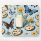 Milk and Cookies with Flowers and Butterflies Blue Mouse Pad