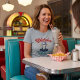 Printed on a Light Steel women’s basic t-shirt, the colors remain crisp while the retro badge layout keeps the look clean, balanced, and easy to wear.