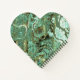 This small heart-shaped notebook features a swirled marble-like design in shades of milky teal, grey, and tan. The pattern looks a bit organic - it reminds me of swirled agate, tie-dye, fractals, and marble.
