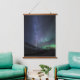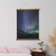 A landscape photograph with the Milky Way and green Northern Lights (Aurora borealis) in the arctic night sky above North Norway, Scandinavia.