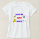 This T-shirt features a bold and colourful design with the phrase ‘GIVE ME SOME SPACE.’ The design includes space-related images such as rockets, planets, an astronaut helmet, and stars. The theme of the design is playful and focuses on space exploration and astronomy.