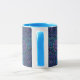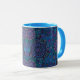 White and light blue 11 oz. combo mug with an image of a beautiful blue, purple, pink and green millefiori design. See matching espresso cup, candy jar, paper plate, square ceramic tile, square trivet and coasters. See the entire This & That Mug collection in the HOME section.