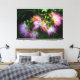 Colourful photograph on canvas of Mimosa Tree blossoms fully formed, The colour contrast of lime green, pink and white against the dark background make for a visually stunning, bright and textured image on canvas that is unique as it is a rare subject.
