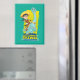 This cheerful design from Dino Ranch features the adventurous young cowgirl Min riding her friendly brontosaurus, Clover. Min is wearing her signature yellow cowboy hat, a brown and yellow plaid shirt, brown pants, and brown boots. She is smiling broadly, holding onto Clover's yellow saddle with a star emblem. Clover, the light blue brontosaurus, also appears happy and ready for action. The text "LET'S MAKE A DINO DIFFERENCE!" is prominently displayed at the bottom in bold, colourful lettering, conveying a positive and impactful message. The background is a light yellow with abstract green and blue shapes, adding to the playful and energetic feel of this Dino Ranch scene. This artwork captures the spirit of teamwork and making a positive impact, perfect for fans of Min, Clover, and the Dino Ranch series seen on platforms like CBC Radio Canada.
