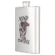The product is a good size and came exactly as it was pictured. The lid is not attached to the flask, which could be dangerous on drunken nights... The print came out surprisingly well and looks very sharp. Would definitely recommend.
