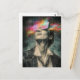 AI generated person with a large glasses on their head to show mind control in a retro glitch style of art