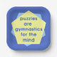 Puzzles are gymnastics for the mind text in a yellow and blue design makes a unique gift design for family and friends at birthdays and holidays.