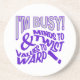 "I'm busy! Minds to twist & values to warp!". See my store for more colour choices and other items with this print.