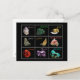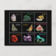 Virtual mineral collection - black postcard with nine colourful crystal specimens.