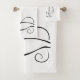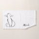 Mini chat noir sur un ensemble de serviettes de bain arrière - plan blanc. Personnalisez cet élégant ensemble de serviettes de bain avec votre nom.