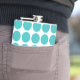 Cute et tendance Mini Flask Pois. Ce design est composé de pois en petits cercles en bleu turquoise et blanc. Un texte peut être ajouté à cette conception pour lui donner une touche personnelle.
