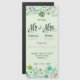 Beautiful shades of teal blue green with hints of yellow, gold and purple petite flowers cover and delicately frame this modern, fresh, trendy wedding announcement magnetic invitation with a mint green background. This save the date wedding keepsake invite is perfect for brides and grooms who enjoy unique, whimsical wedding invites for celebrating their special day. Perfect for any time of the year, this would beautifully compliment a garden wedding, a spring or summer event, a country wedding or a wedding with a botanical theme. Easily customize this save the date magnetic invite by using the given template to personalize the text. DIY brides will love this budget conscious choice without sacrificing style or quality. Guests will love it as a memento.