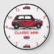 Une horloge murale funky avec l'image d'une Mini classique sur le devant. Cela ferait une horloge idéale pour un garage ou une chambre.