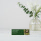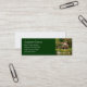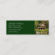 Modèle de carte de visite de cabine du journal immobilier. Petite taille, carte de profil en vert foncé avec texte blanc et photographie d'une maison en rondins sur l'eau. Convient aux hommes ou aux femmes. Les zones modèles permettent de customiser facilement. L'inverse est blanc clair.