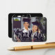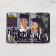 Ces invitations à la remise des diplômes sont de petite taille mais grandes sur la simplicité stylisée. Annoncez la réussite des diplômés et la famille et les amis invitations à célébrer avec élégante soirée de remise de diplômes mini cartes de boîtier photo. La petite taille de carte de visite de 3,5 po x 2,5 po les rend faciles à insérer avec les annonces de graduation ou à distribuer à la famille et aux amis (ils ne sont pas fournis avec des enveloppes.) Vendu en paquets à un prix abordable, ces inserts offrent une option chic pour rester dans un budget raisonnable. L'image et toute la formulation de ce modèle sont simples à personnaliser, et les couleurs peuvent être customisées à l'aide de l'outil de design Zazzle. Le design moderne en noir et blanc présente une calligraphie manuscrite avec un casquette en carton de mortier, une typographie classique élégante, et une photo de votre choix, comme une image ou une image de haut niveau de la cérémonie de début. Cette carte d'invitation à la remise des diplômes est une façon unique d'annoncer une fête spéciale pour n'importe quel groupe de diplômés, comme les frères et soeurs, les meilleurs amis, les cousins, les jumeaux, frère et soeur, etc. Félicitations aux diplômés !