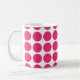 Mignonne et tendance Mini Pois Mug. Ce design est composé de pois en petits cercles en rose et blanc. Un texte peut être ajouté à cette conception pour lui donner une touche personnelle.