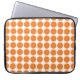 Cute and trendy Mini Polka Dots Laptop Sleeve. This design features small circle polka dots in orange and white. Text can be added to this design to give it a personal touch.