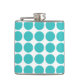 Cute and trendy Mini Polka Dots Flask. This design features small circle polka dots in turquoise and white. Text can be added to this design to give it a personal touch.