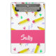 Ajoutez votre nom sur ce crayon jaune et gratte sur le design motif arrière - plan blanc.