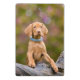 Un jeune chiot Vizsla couleur rouille dorée se penche curieusement sur une bille d'arbre à bec. La Hongroise ou Magyar Vizsla est une race de chiens de chasse. Une jolie photo de chien prise par Katho Menden. Ce mini porte - bloc acrylique est une idée cadeau pour les amoureux de les chiens. http://www.zazzle.com/kathom_photo - Vous pouvez ajouter votre propre texte en appuyant sur le bouton customiser.