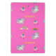 Unicorne et arc-en-ciel avec texte sur le design motif arrière - plan rose.