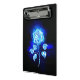Fleur, rose abstrait de la flamme bleue sur arrière - plan noir. Rose de feu.