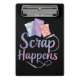 Calling all quilters and sewists! When your project goes sideways and your fabric stash takes over, just remember: Scrap Happens! This clipboard will be handy in your sewing room for whenever you need a laugh over a messy patchwork session. Looking for an awesome item for the crafter in your life? This design makes a unique present for anyone who loves textiles and sewing jokes.