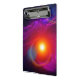 Une image numérique du soleil et des bandes croissantes des vents solaires dans des couleurs vibrantes audacieuses.