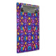 Vibrant clipboard with a symmetrical, kaleidoscopic pattern in purple, blue, and orange hues. The design creates a dynamic, energetic feel.