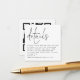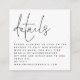 MINI QR code Script Black White Wedding Details. A charming miniature size 2.5" square to enclose with your invitations with your Qr code to your wedding website on the back. The header is large and in an informal set script, with the details beneath and lots of white space on a square shape for a contemporary style. Easily personalise the rest of the text. Your QR code will be automatically generated to update the sample code in the design, when you simply change the sample URL in the template with your own wedding website URL. You can change text and background Colours to any of your choice via edit further.
