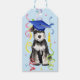 Congratulate your favourite graduate with a gift tag featuring a cute little Miniature Schnauzer graduate wearing a mortarboard amid a flurry of confetti.
