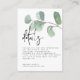 MINI sized 3.5 x 2.5” with this informal Script Green Eucalyptus Wedding Details Enclosure. The header is in an elegant set handwriting style with the details beneath and watercolor green eucalyptus leaves flowing across the top. Easily personalise with your own details.