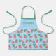 A sweet cute apron that features a delightful and playful pattern of scattered mini strawberries on a soft, sky blue background. The strawberries are rendered in a vibrant red with green leaves, and they are interspersed with small, delicate white or light yellow strawberry flowers, adding to the charm. The overall impression is cheerful, fresh, and sweet, making it ideal for children.