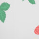 A sweet cute wallpaper that features a delightful and playful pattern of scattered mini strawberries on a sweet, light grey background. The strawberries are rendered in a vibrant red with green leaves, and they are interspersed with small, delicate white or light yellow strawberry flowers, adding to the charm. The overall impression is cheerful, fresh, and sweet, making it ideal for nursery’s decor and baby, toddler, child rooms.