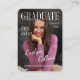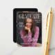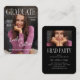 Mini magazine style graduation announcement and invitation feature elegant graceful serif and script name with photos, more grad party details on the back, sophisticated and timeless, Custom it with your own photos and information.