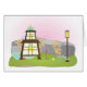 Number 4 in a series of 18 miniature golf course holes, this one features a lovely arch, a stream and blooming pear trees.