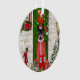 Miniature Pinscher Dog Noël assis à l'extérieur de la maison décorée avec la couronne de Noël, sapin de Noël est une idée cadeau de Noël parfait pour les amoureux de les chiens.