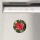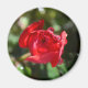 Miniature Red Rose magnet. A pretty miniature red rose blossom about to open covered in fresh spring raindrops tumbling down its soft petals. A beautiful gift for fans of rose photography, floral art, and flower design.