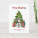 Celebrate the season with this adorable Miniature Schnauzer dog holiday card! A festive green Christmas tree with ornaments, bows, and wrapped presents sets the perfect backdrop for a lifelike dog illustration. Personalize the front with your family name, your pet’s name, and the year, while the back features a charming red paw print pattern for a playful finishing touch. Perfect for dog lovers, pet parents, and families who want a unique “Merry Christmas” greeting that showcases their furry friend. I offer many different dog breeds in the collection below.