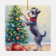 Miniature Schnauzer Decorating Christmas Tree Dog Ceramic Ornament