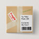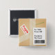 This button resembles a miniature corrugated cardboard shipping box covered in tape and signs reading "FRAGILE Handle With Care" and "Please do not drop." The shipping label can be customized with your own text to say anything from " I Love You" to "Have a nice day" or promote your brand or business. A decorative barcode on the shipping label is a realistic detail that can be replaced with a QR code to a personal or business website.