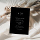 These elegant, modern wedding invitations feature a simple black and white text design that exudes minimalist style. Add your initials or monogram to make them completely your own. The background of the invitation is solid black.